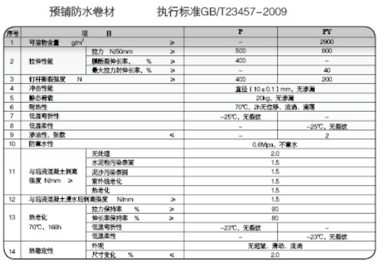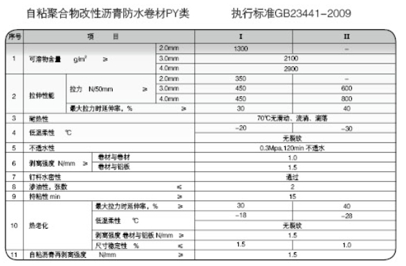 自粘聚合物改性瀝青聚酯胎防水卷材(以下簡稱PY類)是以長絲聚酯氈為胎基,以增粘聚合物改性瀝青為浸涂材料,上表面覆以聚乙烯膜、細(xì)砂.頁巖、鋁箔或隔離膜為隔離層,下表面覆涂硅隔離膜為防粘層而制成的自粘聚合物改性瀝青聚酯胎防水卷材。